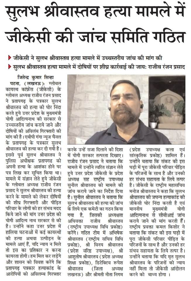 Sulabh Srivastava was a journalist from UP in ABP news who was murdered by anti-socials.